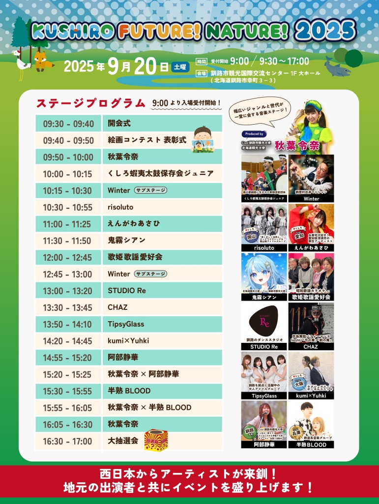 釧路管内のアーティストだけでなく、西日本各地で精力的に活動しているアーティストの皆さまが本イベントのために来釧!